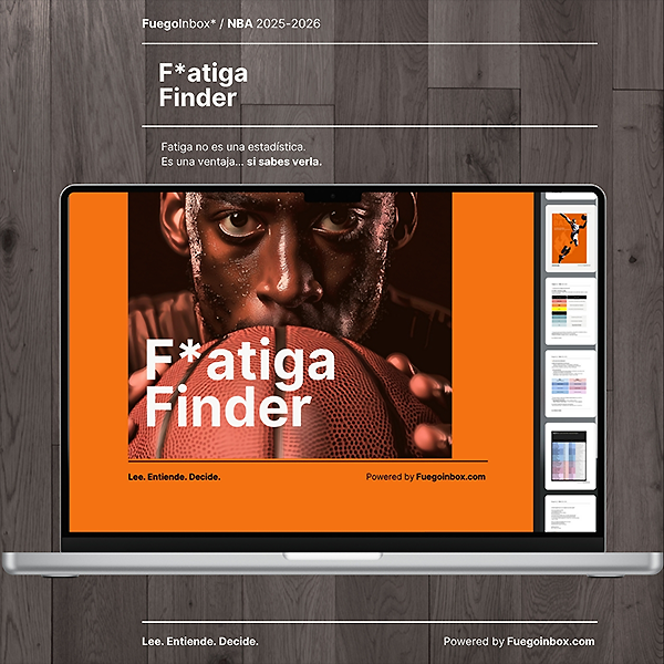 F*atiga Finder NBA Una hoja editable que detecta fatiga, viajes duros y back-to-backs invisibles para el ojo común. No da picks: te da contexto real para ver lo que las estadísticas no muestran. Ideal para apostadores y fans que quieren ir un paso adelante.